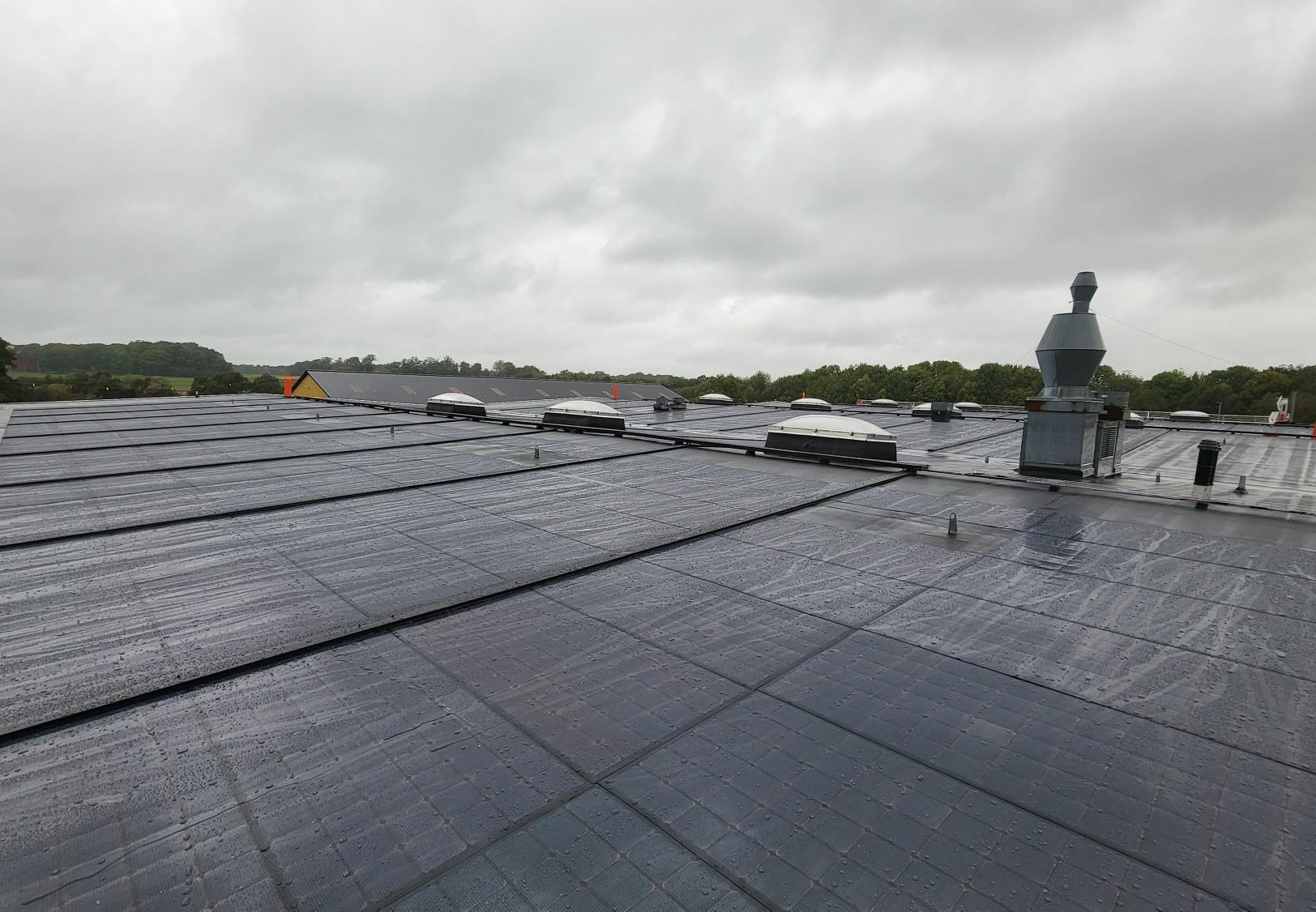- Panele można montować na dachach o małym spadku, powierzchniach lekko zakrzywionych oraz dachach o nieregularnej geometrii.